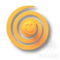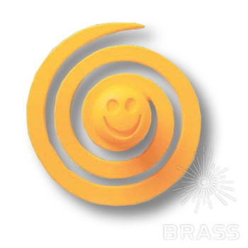 Ручка - кнопка, выполнена в форме рельефного стилизованного червячка, свернувшегося спиралью. Поверхность шероховатая матовая, цвет желтый.