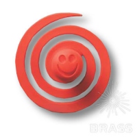 Ручка - кнопка, выполнена в форме рельефного стилизованного червячка, свернувшегося спиралью. Поверхность шероховатая матовая, цвет красный.