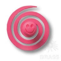 Ручка - кнопка, выполнена в форме рельефного стилизованного червячка, свернувшегося спиралью. Поверхность шероховатая матовая, цвет малиновый.